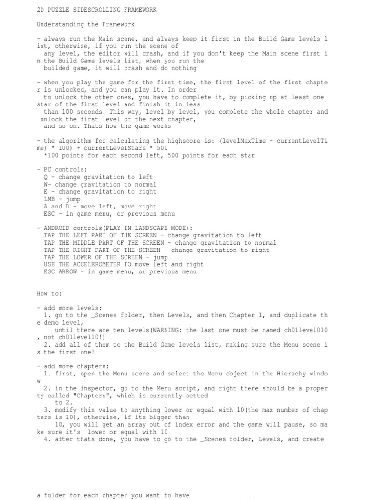 The framework’s logic is completely finished, ready for the user to customize apparence and add as many chapters and levels as wanted.