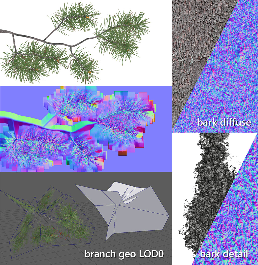Haven’t been able to check the thread for a while, thanks for your replies. Selling textures is a great idea. I’ve attached a little example of what I can include, is this what you need? Also I can add geo for different LOD levels for branches. I’d love to see your suggestions.