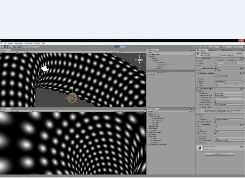 Enemies will be able to see the player’s rotation variable, and will apply it to themselves as a rotation translation, allowing them to rotate along the edge of the pipe (as the player does), while otherwise staying stationary to the pipe itself - the enemies never move from the segment of pipe they spawn in, they simply appear to do so as the pipe segments are all moving forward toward the player.