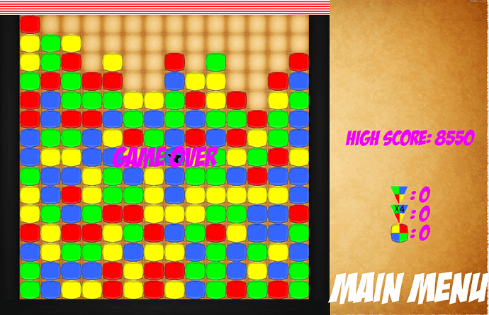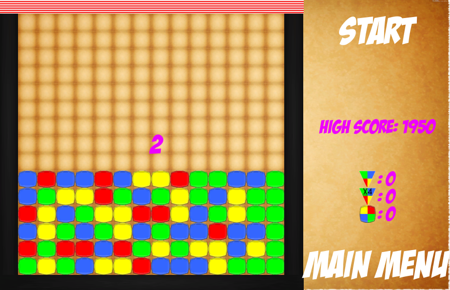 As I mentioned above, your goal is to destroy as many blocks as possible. Over time, lines fill up and it keeps getting faster and faster for the Medium and hard level only. If your screen fills, the game is over.