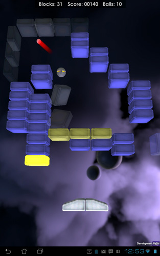 The UI is proportional to the size of the screen… or it should be. Feel free to test this and let me know if it’s alright. The D in the corner of the menu screen will throw you into the current work in progress sector, it’s my “Debug” button for Android testing. Finally, know that you can change the paddle sensitivity, difficulty, and reset the score under Setup in the Main Menu.