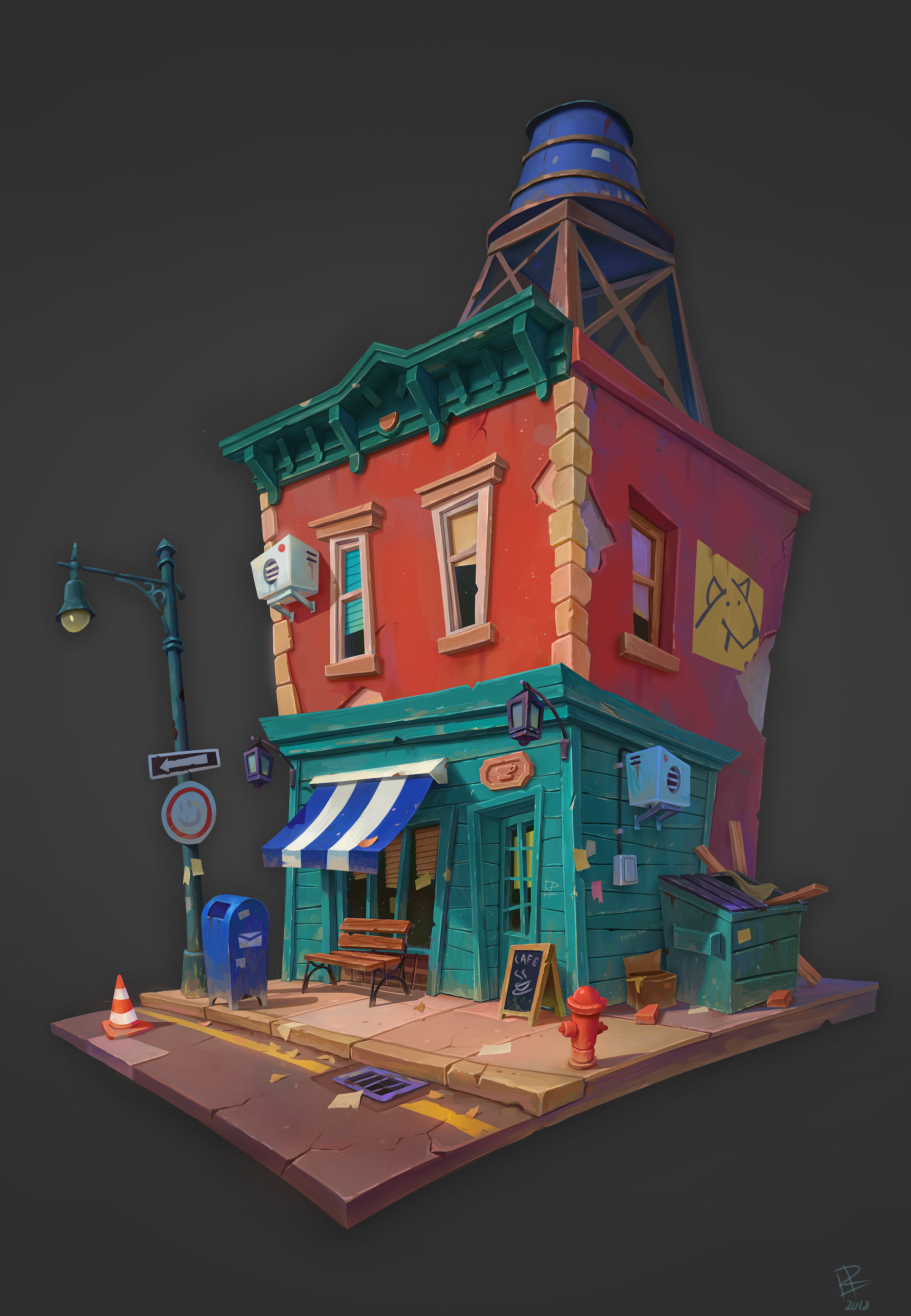 Hi everyone, ,my first post here. I have this cartoony city on my to do list for a while, and finally I decided to sit down and finish it. this is first building “blockout”.