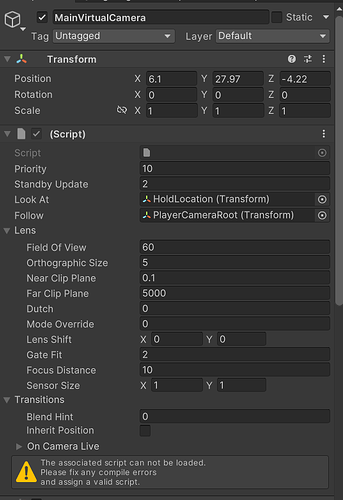 I’m not sure where to start with this one. Ever since I upgraded to 2.10.0, after I press play, then stop, I sometimes randomly get this error: “CinemachineExtension requires a Cinemachine Virtual Camera component” and when I look at my virtual cameras, their gameobjects all appear to have lost their scripts. If I close and restart Unity, everything is restored. Any ideas what’s going on?