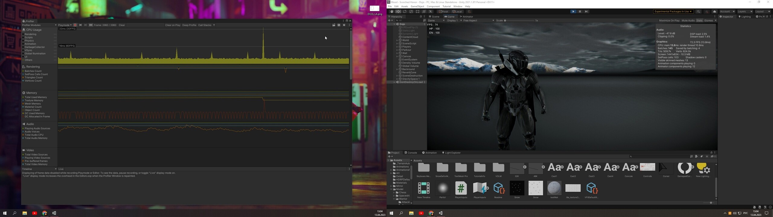 In the second image, the cursor is inside the game and it is black, and the profiler shows that the Other update takes 16ms, while in the game it is 30 fps…