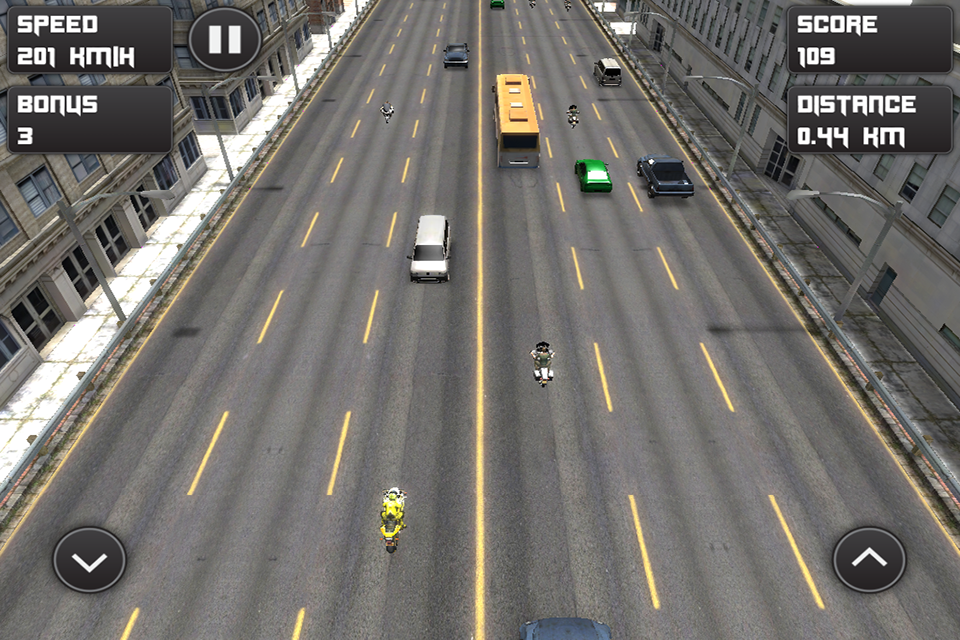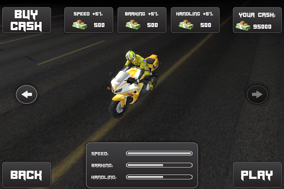 Race different vehicles through endless courses while dodging other vehicles and collecting cash.