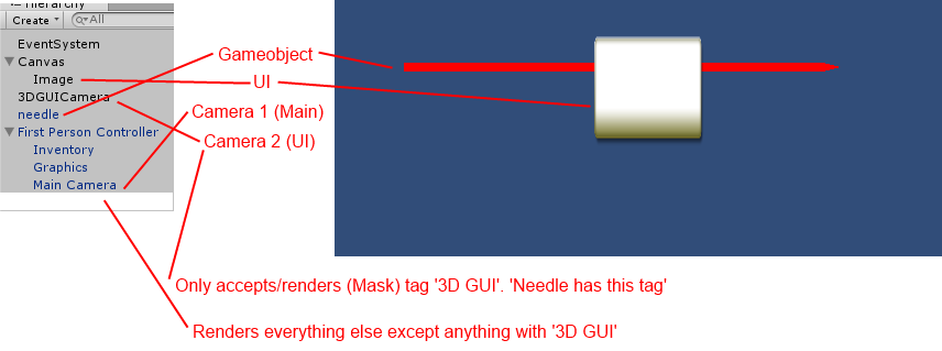 Yes, I have 2 cameras and played with the Mask settings. I have also found and followed the following tutorial, making the object appear as an interface worked, however half of the tutorial is out of date due to the new UI which im playing with, these are my results so far…