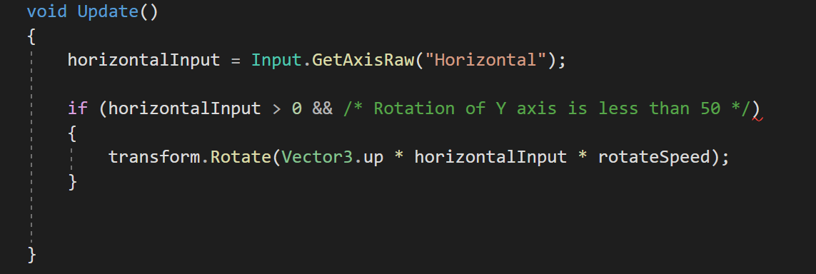 I want to write a script that will rotate the wheels of my car if the rotation Y of my wheel is equal to or less than 50. So that the wheel stops rotating when its at 50.