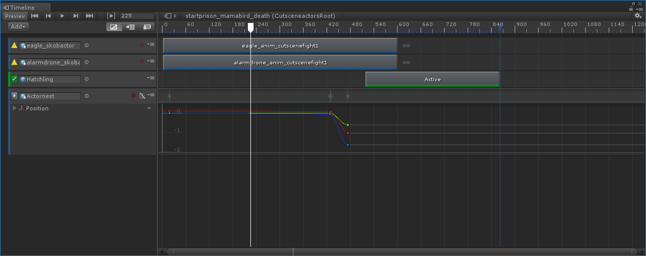 Attached screenshot of timeline I’ve been testing with. It doesn’t have what I would consider very many clips - two animator tracks and an activation track with one clip each, and one animator track with three transform.position keyframes. Calling RebuildGraph off the main thread definitely isn’t allowed by Unity right now.