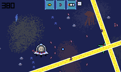 Evil creatures from outer space are invading our world. Use your flying saucer to keep them away!