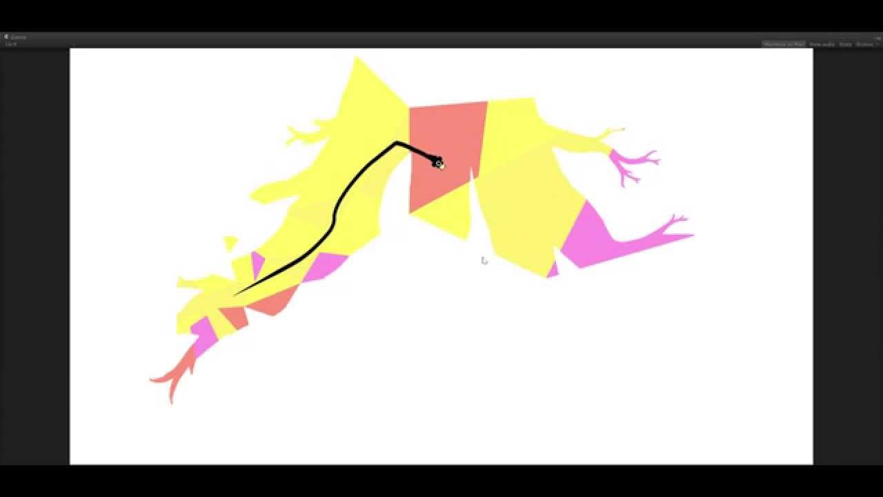 My game has thousands of cut out pieces of geo. Some concave, some convex. Each piece of geo is white. Once the player passes over it (triggers it), color is turned on via a script. I have this working (as you can see in the video below), by attaching a sphere collider to each piece of geo.
