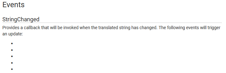 Thanks ! I’ve noticed that two texts are missing in the LocalizedString documentation: