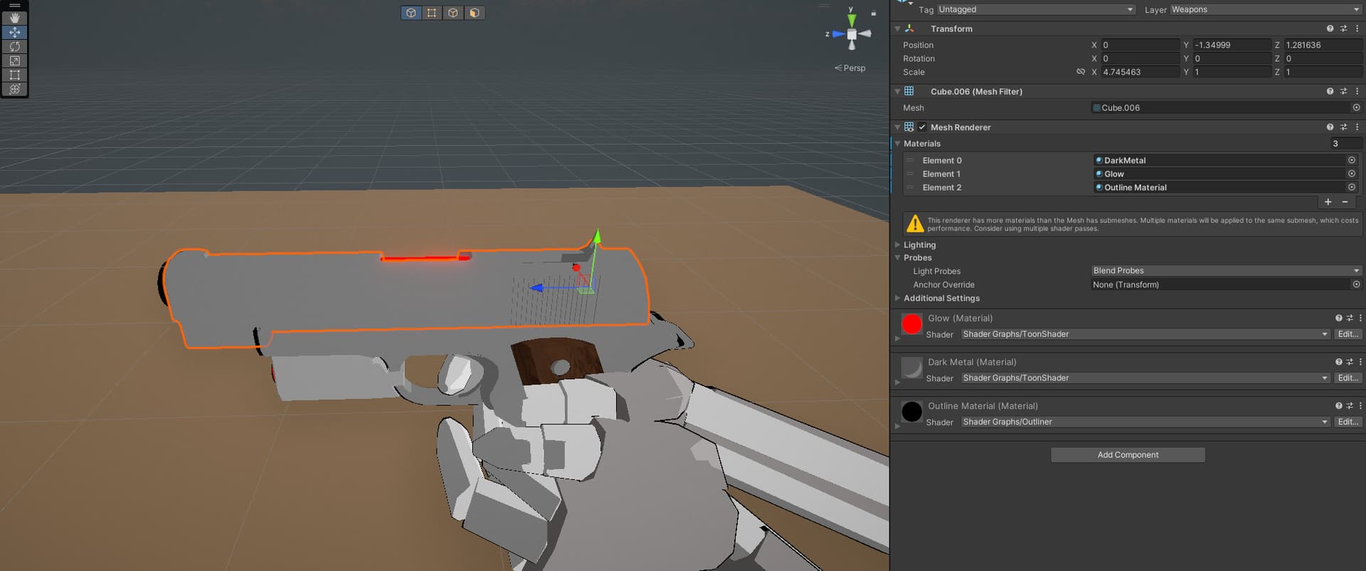 I have this toon shader that has a cell shading component and an outline component, but when I apply the outline component to various models with glows, it doesn’t work. Even when I remove the glow material or when I change it to another shader, it doesn’t work.