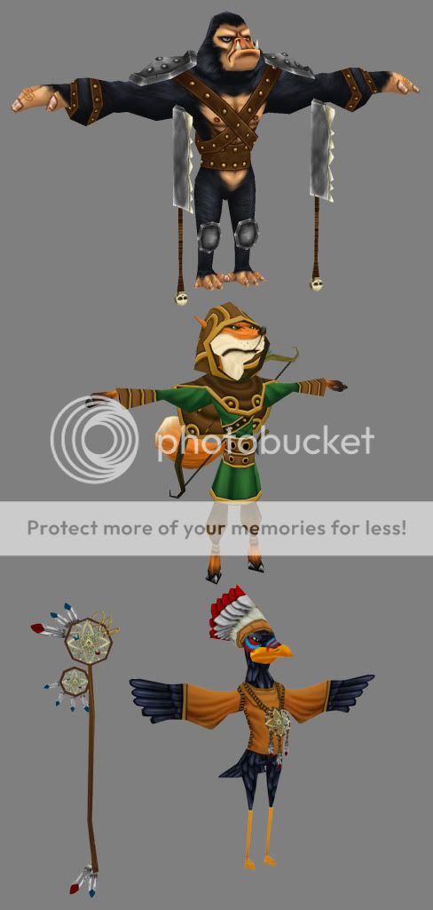 Squirrel Defender: Focuses on chants to aid his allies in battle, he can bring his allies up to fighting strength with heal,mana, and damage auras.
