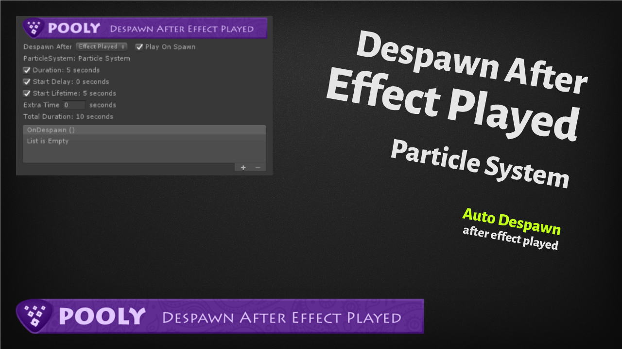The system is easy to understand and quick to integrate, allowing you to configure how objects are pooled, how they are spawned and how they get despawned.