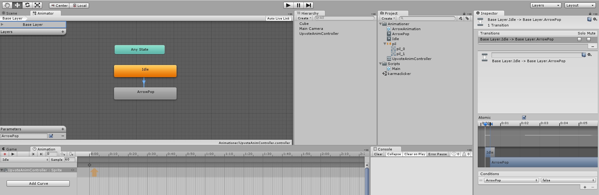 Add a transition back to Idle. The default condition on the transition will simply wait until the ArrowPop animation is done before changing back to Idle.