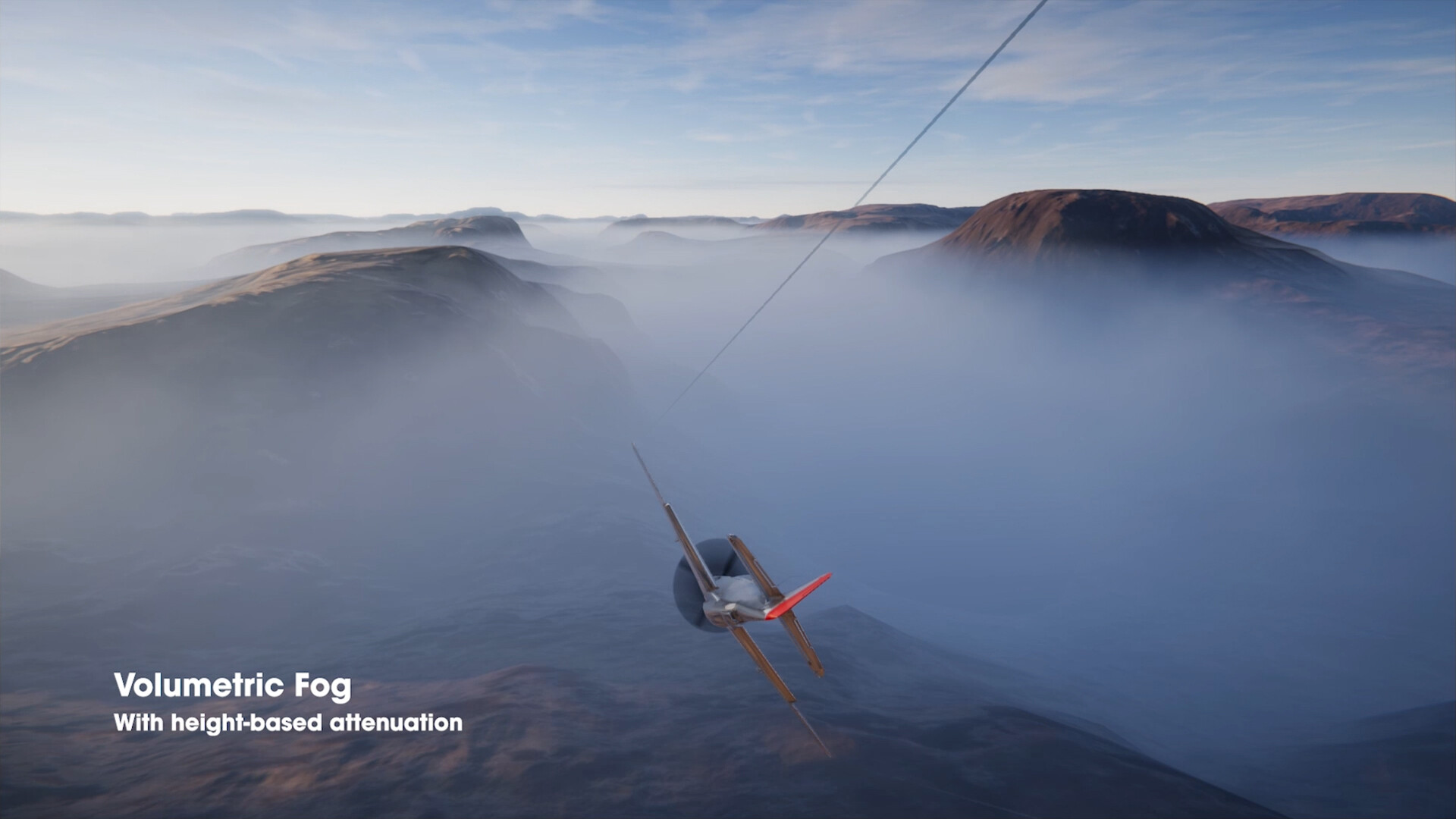 Fog color is now based on the color of the atmosphere, making it more realistic and easier to configure. Because of this, the “Fog Direct Intensity” parameter (which previously controlled the amount of sunlight in fog) has been removed, and the “Fog Ambient Intensity” now instead controls how much the scattering mask will affect fog lighting, with a value of 0 meaning that the fog will appear completely black when in shadow.