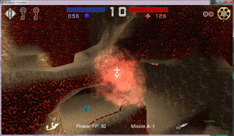 The demo (http://www.7druids.com/6D2F_1LevelDemo_1.0_Setup.exe, uninstall via normal System settings/Software management in Windows), lets you play Chapter 10 (out of 32 in the final version). Each chapter (or level) will put you in a mysterious cave system where there is only one exit to escape. On your way you will encounter several enemies attempting to stop you. Stuart McKenzie-Walker, author of the novel “Cool Hand Puke”, enhanced the playing experience with a nice little short story that is fed to you every level. Your objective is to find 2 keys in order to open the exit of each cave system. Also look out for a secret chamber and try to open it. It will contain at least one weapon upgrade. Don’t forget to try a little helper called 6D2F that will guide you to the exit in case you got lost (key T).