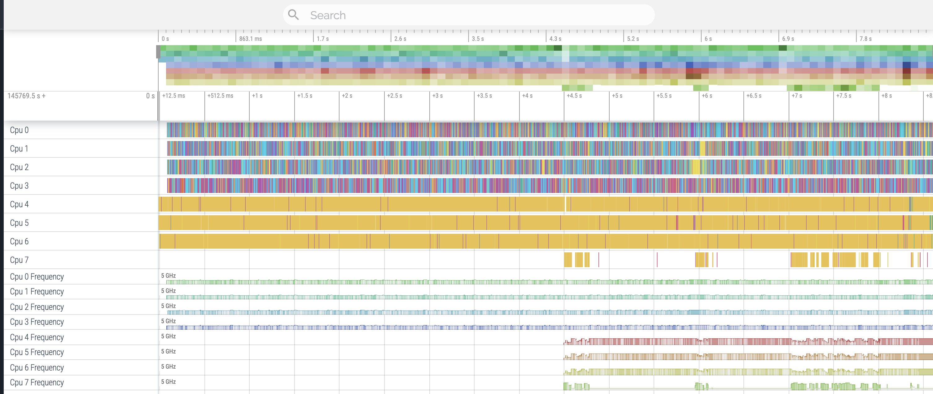 and neither of those did anything apparent. Note I set each one separately, not simultaneously. The systrace still looks almost identical, with very little activity on CPU 7.