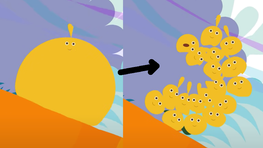 With a button click, the big blob should split into many small blobs (into as many as the player has collected this level).