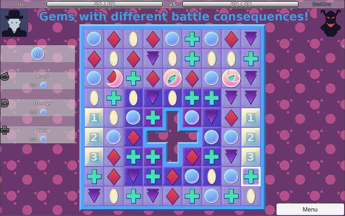 And player have armor too, so same rules are applyed when enemy move. The enemy AI will try to explode gem with the color more dangerous for the player.