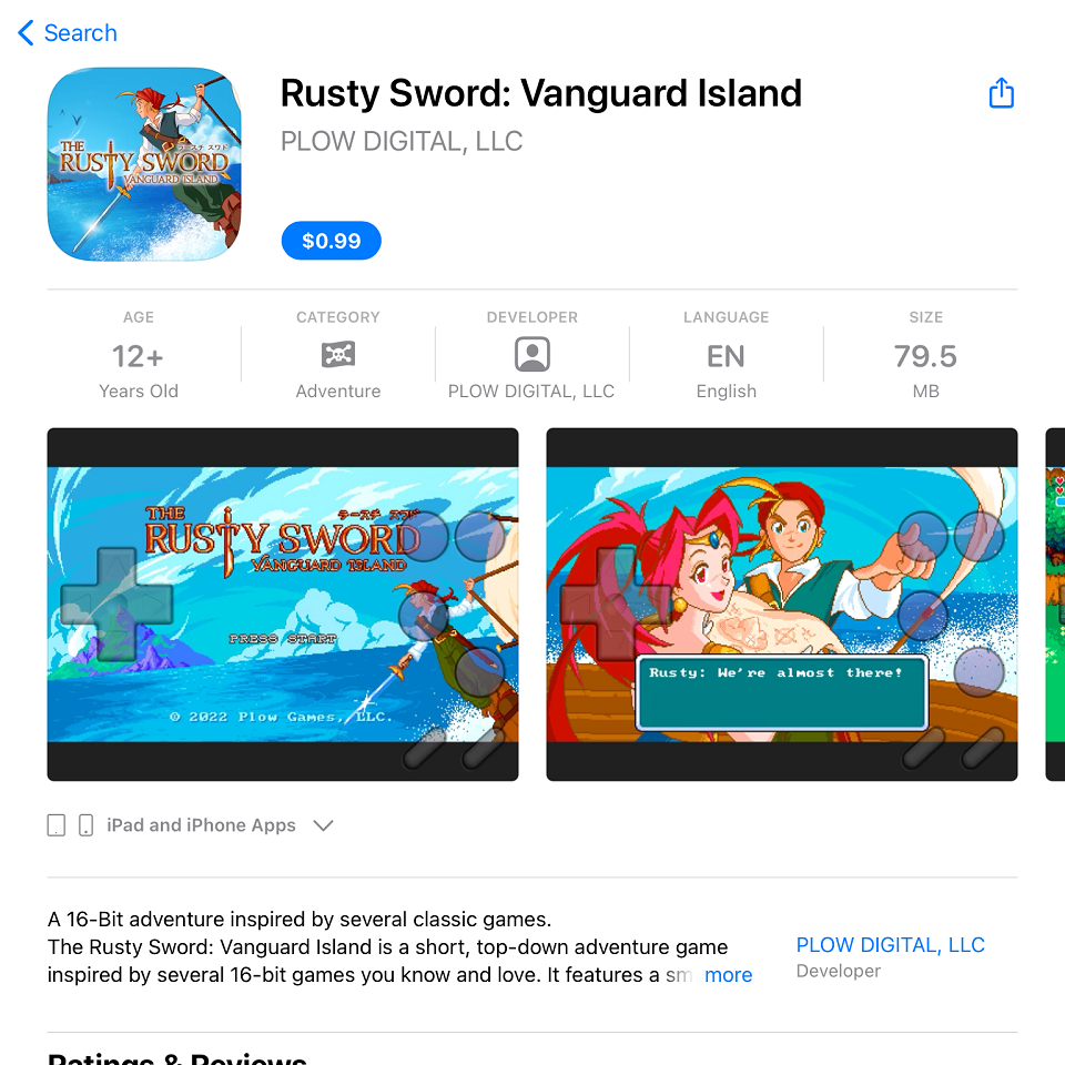 I’m Josh from Plow Games, and we just launched The Rusty Sword: Vanguard Island for Nintendo Switch™, Windows, Mac, Linux, Android, and iOS. It’s a short, top-down adventure game, inspired by several 16-bit classics, that features a small island overworld, a large non-linear dungeon, two player co-op, colorful pixel art, a nostalgic soundtrack, and seven supported languages.