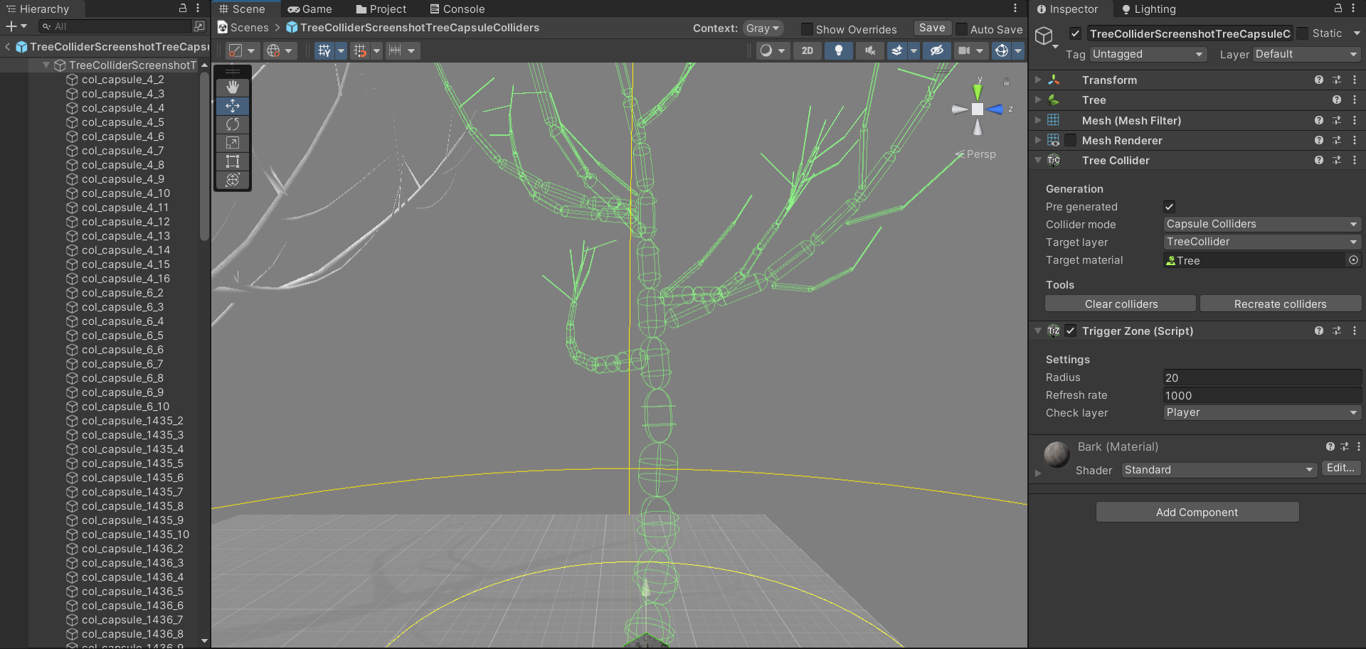 Tool for generating colliders for trees created using the built-in Tree Editor.