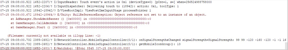 07-15 11:01:22.091 26475-26487/? E/Unity: NullReferenceException: Object reference not set to an instance of an object.