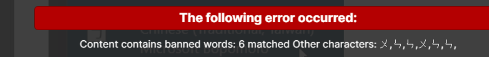 Simplified Chinese works fine (国); However, Taiwan “Bopomofo” and Taiwan traditional Chinese characters were banned. EDIT: Japanese Kanji variants work fine and show as a same chars, different font. This is explicitly for traditional/bopomofo.