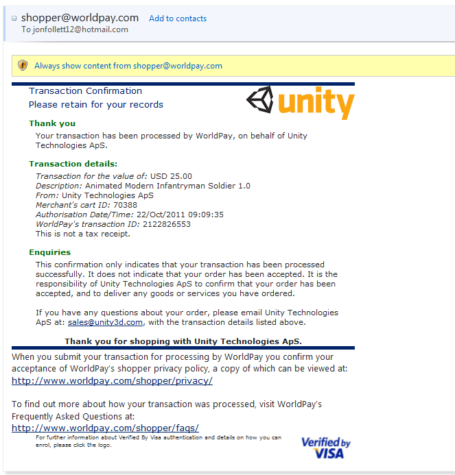 As I understood Unity Store took money but didn’t give product to the buyer and didn’t gave money to me. Buyer throw his problem on me because I gave him model.