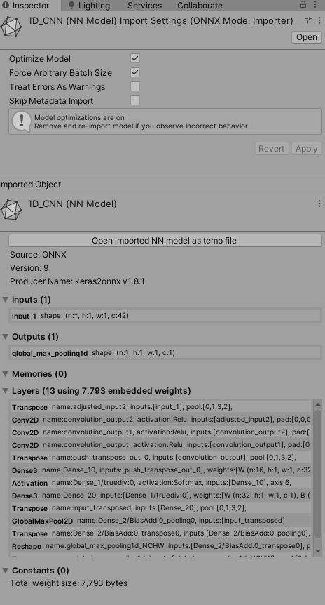 I have also noticed that Unity thinks some of the layers in my model are 2D when they are actually supposed to be 1D. For example, the Conv1D layers in my model are being shown as Conv2D layers.