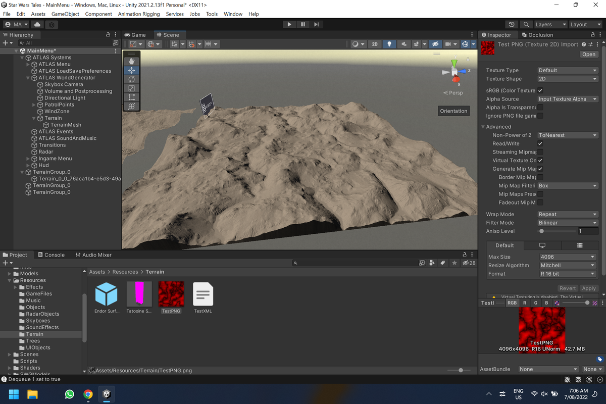 to confirm for you, I import raw into unity terrain, and it shows like picture3, the picture3’s url is http://www.jianshu.com/p/1d0fe567c9c8