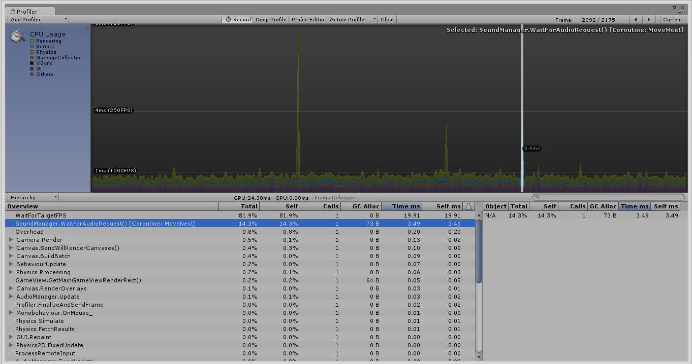To summarize, the www GetAudioClip() function hitches when a stream is finished loading from the web, after accessing the www audioclip property (I assume that’s the moment when the bytes are transformed into an AudioClip). This hitch can completely freeze a device for multiple seconds, making it near unusable in a finished project.