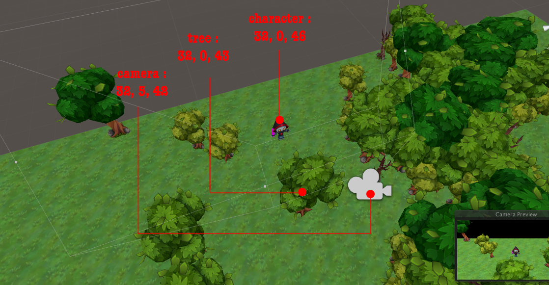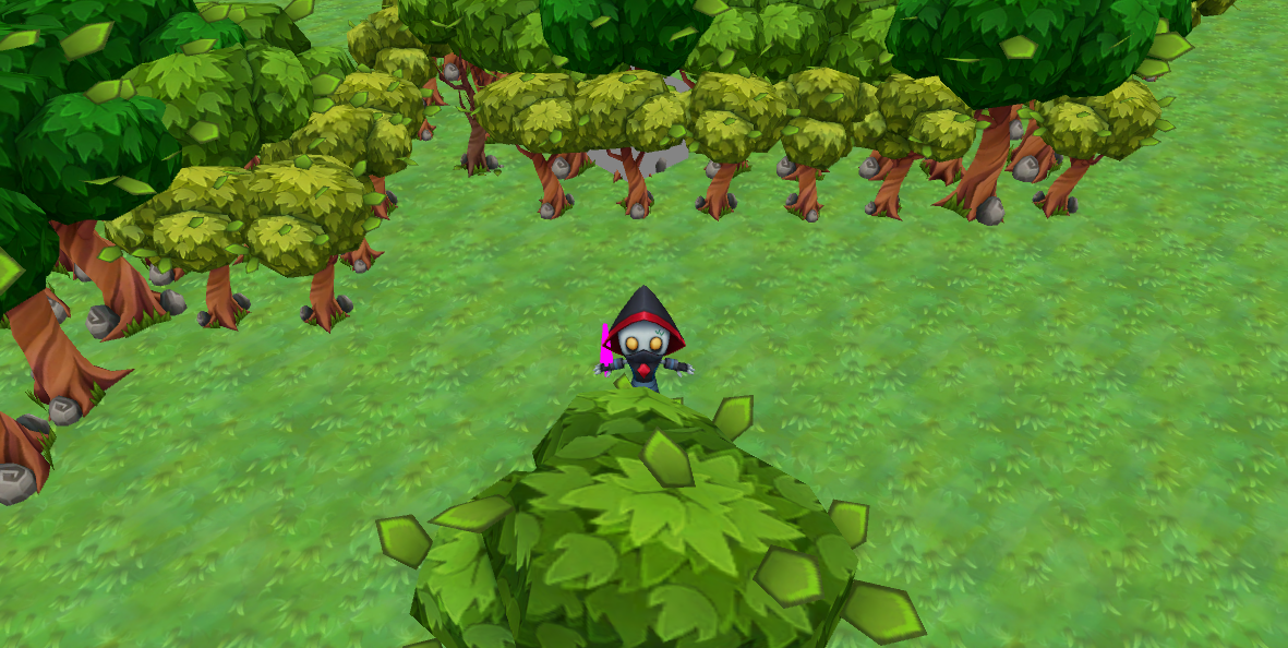 Character should be hidden by trees. Same for the little green tree next to the character, it should be 100% hidden by the big dark green tree.